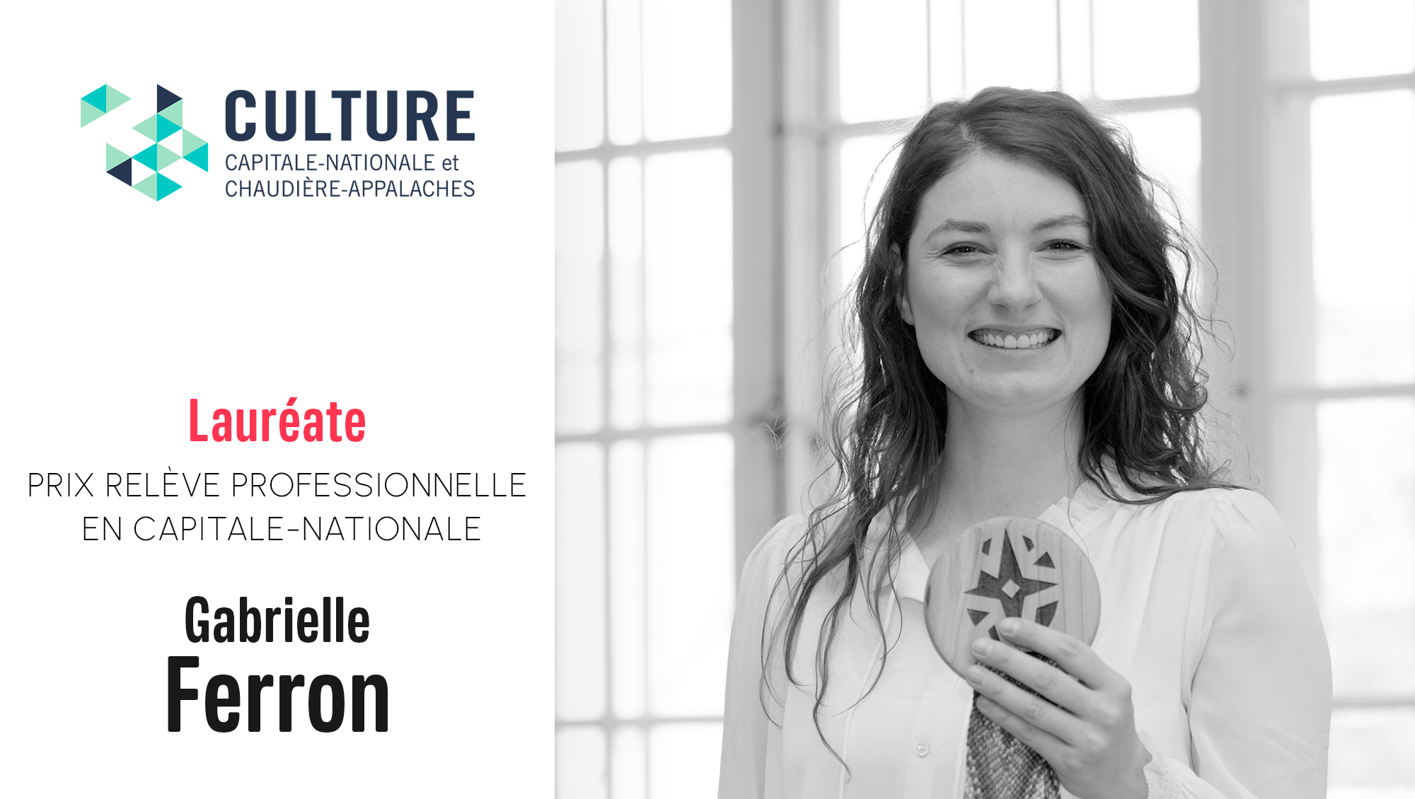Nouveau cette année, le Prix Relève professionnelle de CCNCA vise à reconnaître artiste, auteur, autrice, artisan, artisane, travailleur autonome ou travailleuse autonome de la relève culturelle en Capitale-Nationale et en Chaudière-Appalaches qui se démarque par le dynamisme de son parcours ainsi que par la qualité de ses réalisations et qui souhaite continuer à se développer sur les territoires desservis par CCNCA. Pour en découvrir plus sur la récipiendaire en Chaudière-Appalaches, lisez notre article sur Pamela Doyon! Félicitations également aux finalistes en Capitale-Nationale et en Chaudière-Appalaches!